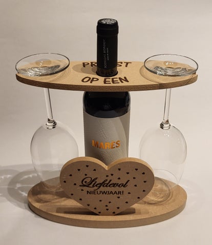 Wijnhouder voor wijnfles en 2 glazen