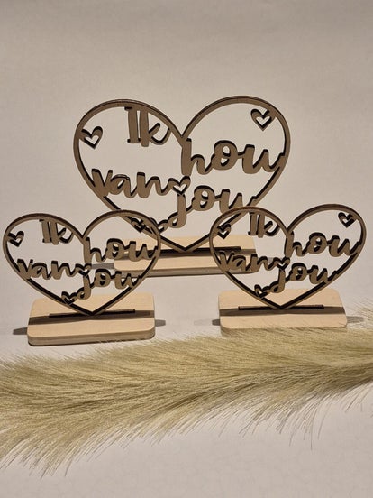 Houten hartvormig geschenkdoosje met leuke tekst.