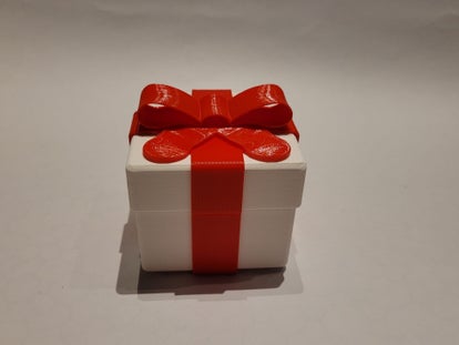 De cadeaubox bestaat uit het doosje met deksel en 2 linten die het doosje afsluiten.