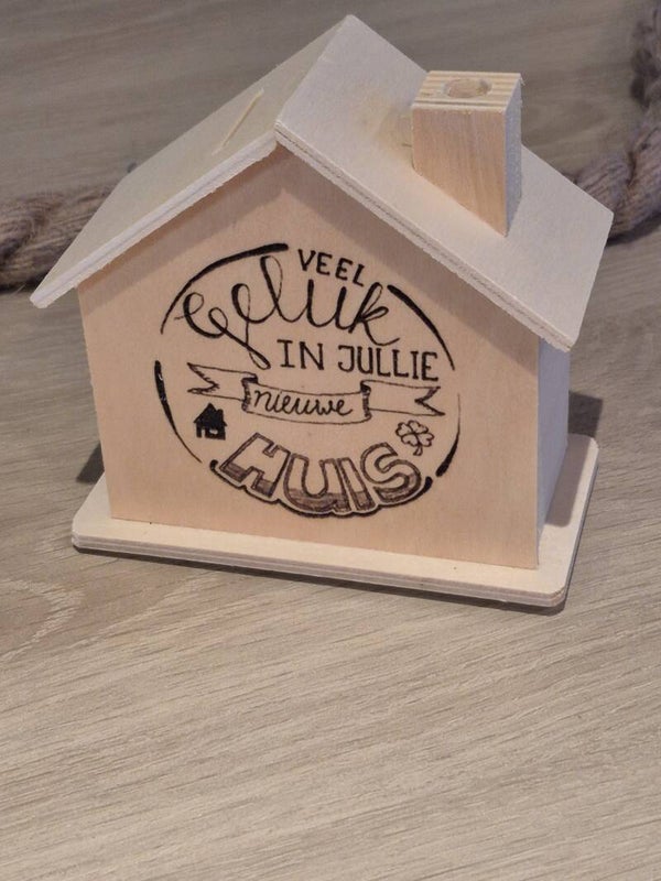 De houten spaarpot is het perfecte cadeau voor iedereen die net een huis gekocht heeft.