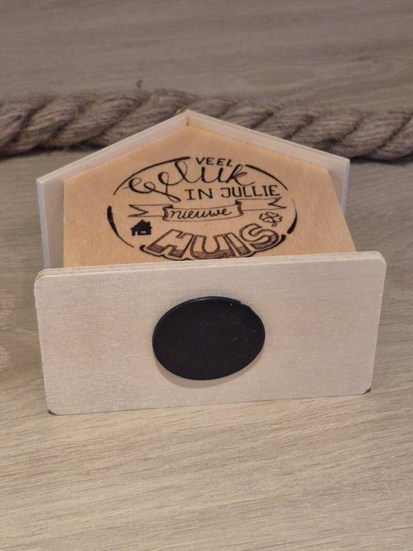 Houten huisje "veel geluk in jullie nieuwe huis"
